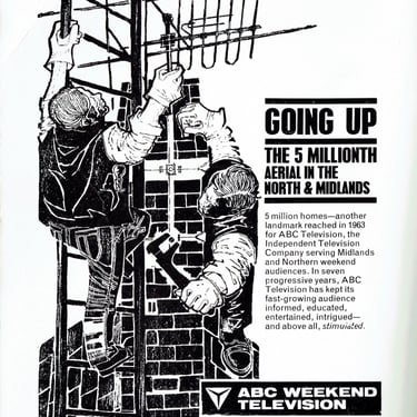 Une plongée visuelle dans l’univers promotionnel de la télévision et de la radio des années 1950 à 1970. À travers une sélection de publicités imprimées — tantôt illustrées, tantôt photographiques — l’exposition interroge la manière dont les médiums se sont vendu à eux-mêmes, jouant sur des codes graphiques audacieux, des métaphores visuelles et des mises en scène soigneusement composées. L’image devient ici outil de séduction : qu’il s’agisse de l’illustration dynamique d’une antenne hissée dans le ciel industriel anglais ou de la photographie souriante d’une animatrice pour enfants, chaque pièce témoigne d’un dialogue étroit entre design graphique et photographie publicitaire. Le traitement typographique, les choix de cadrage, la stylisation des corps et l’humour visuel révèlent une époque où l’imaginaire collectif autour de ces modes de communication se construisait à travers des objets imprimés. Ces documents, aujourd’hui patrimoniaux, sont autant de jalons d’une culture visuelle en pleine expansion